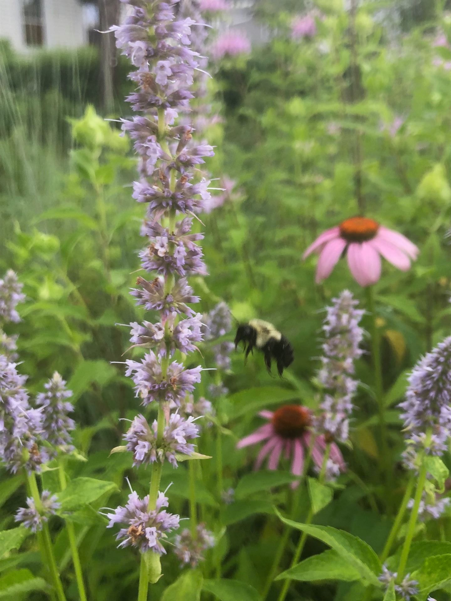 - Anise hyssop (Agastache) - rub the leaves, they smell like licorice, and the towers of light purple flowers are a favorite of a variet of bees