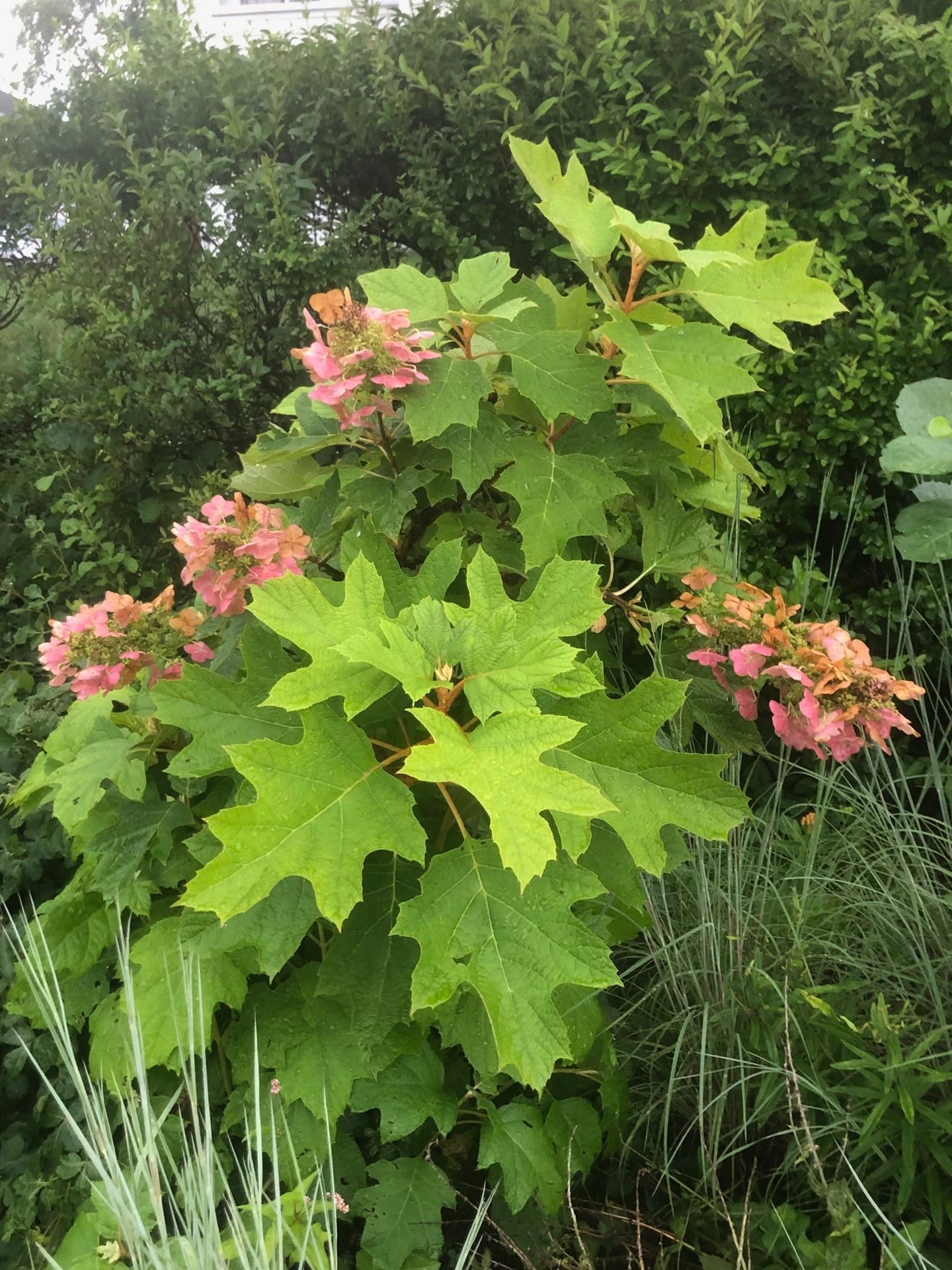 - Oak leaf hydrangea (Hydrangea quercifolia) - as the name suggests, this is hydrangea shrub has leaves which resemble those of oak trees, complementing cone-shaped flower clusters